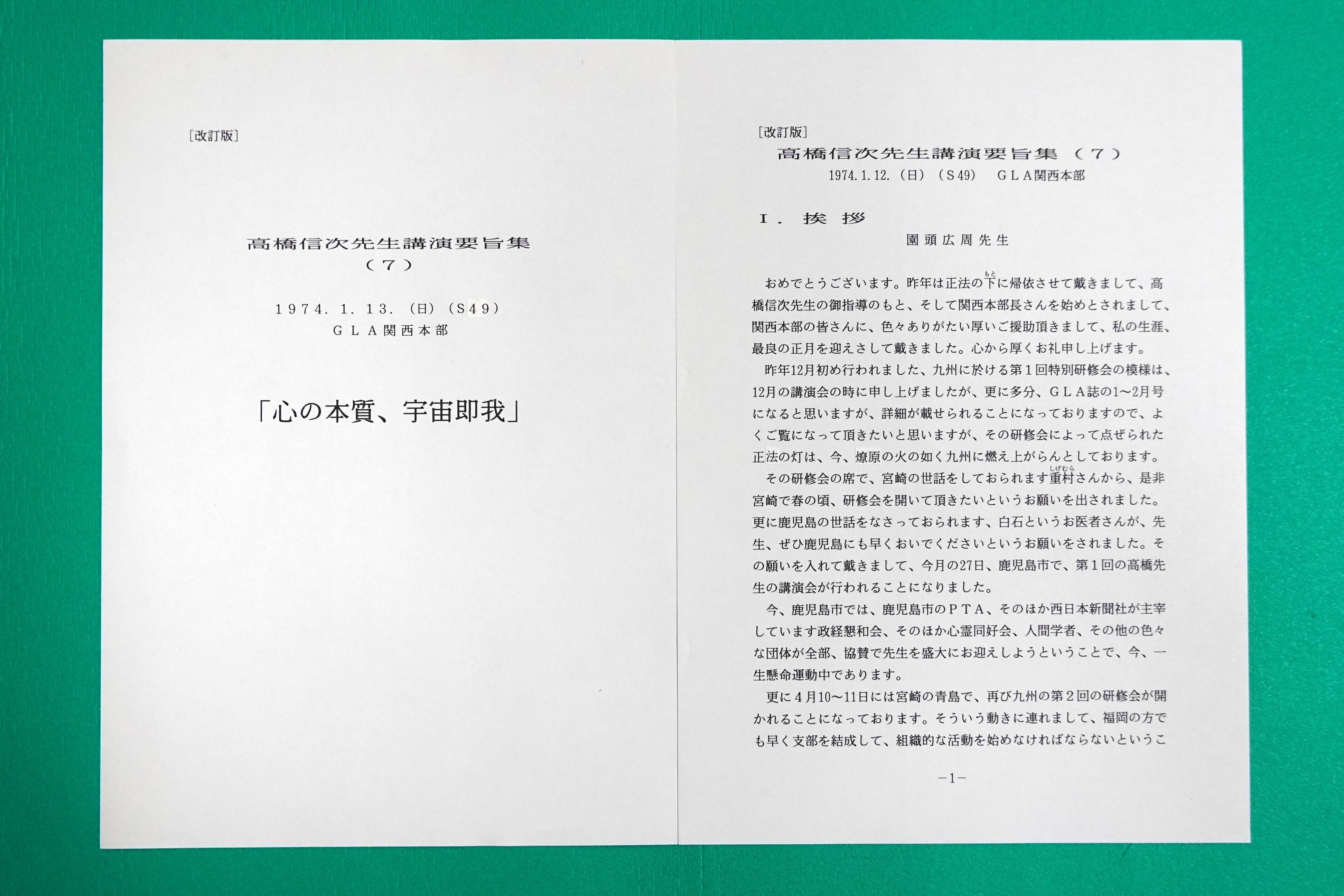 講演集7 「心の本質、宇宙即我」 GLA関西本部 1974.01.13(S49)