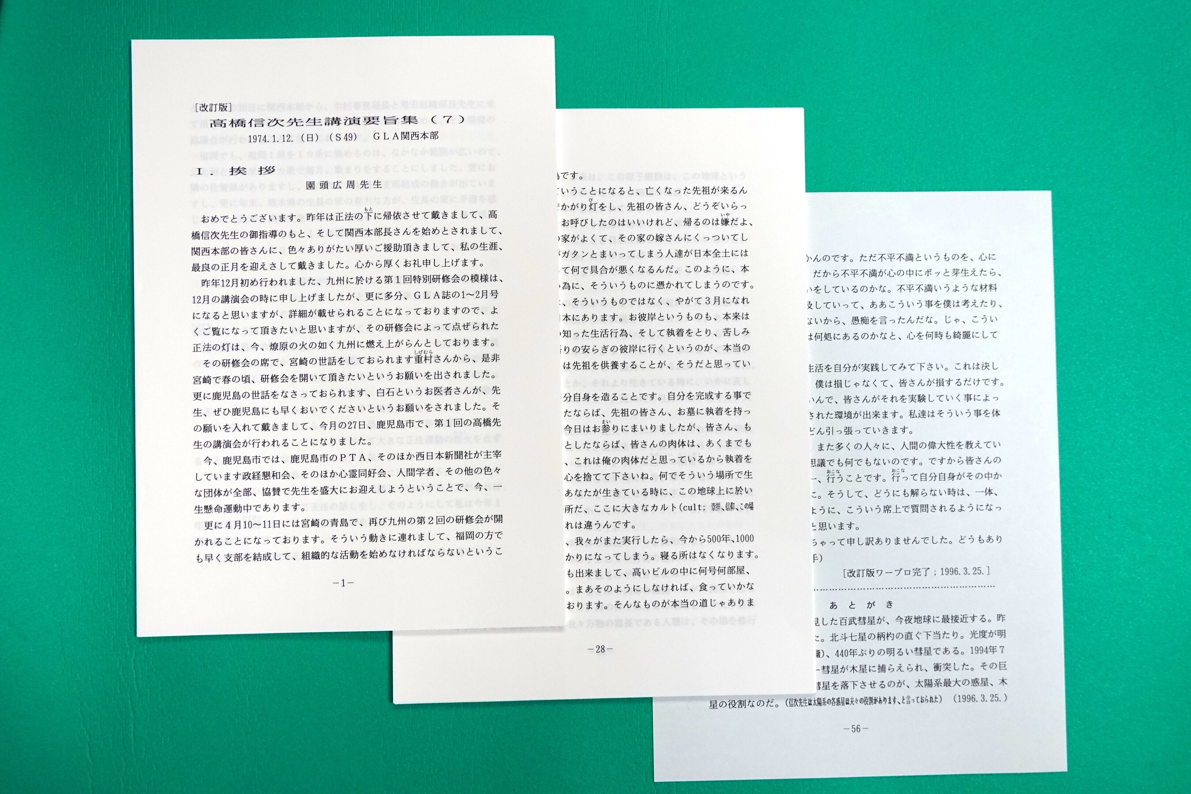 2014.2月頃、谷口氏が高橋信次先生講演集製本分をNetで紹介されていました。これが最初のご縁でした。谷口氏は若かりし頃、福岡県立〇〇〇〇高等学校で教鞭を取られていたとの事。私がそこの卒業生だとわかりより近しくさせて頂きました。亡くなられる直前まで色々と情報交換、資料交換等致しました。谷口氏の資料は、家族の方々で引き継ぐ方が無いとのことで私が引き受けさせて頂きました。 -以上-