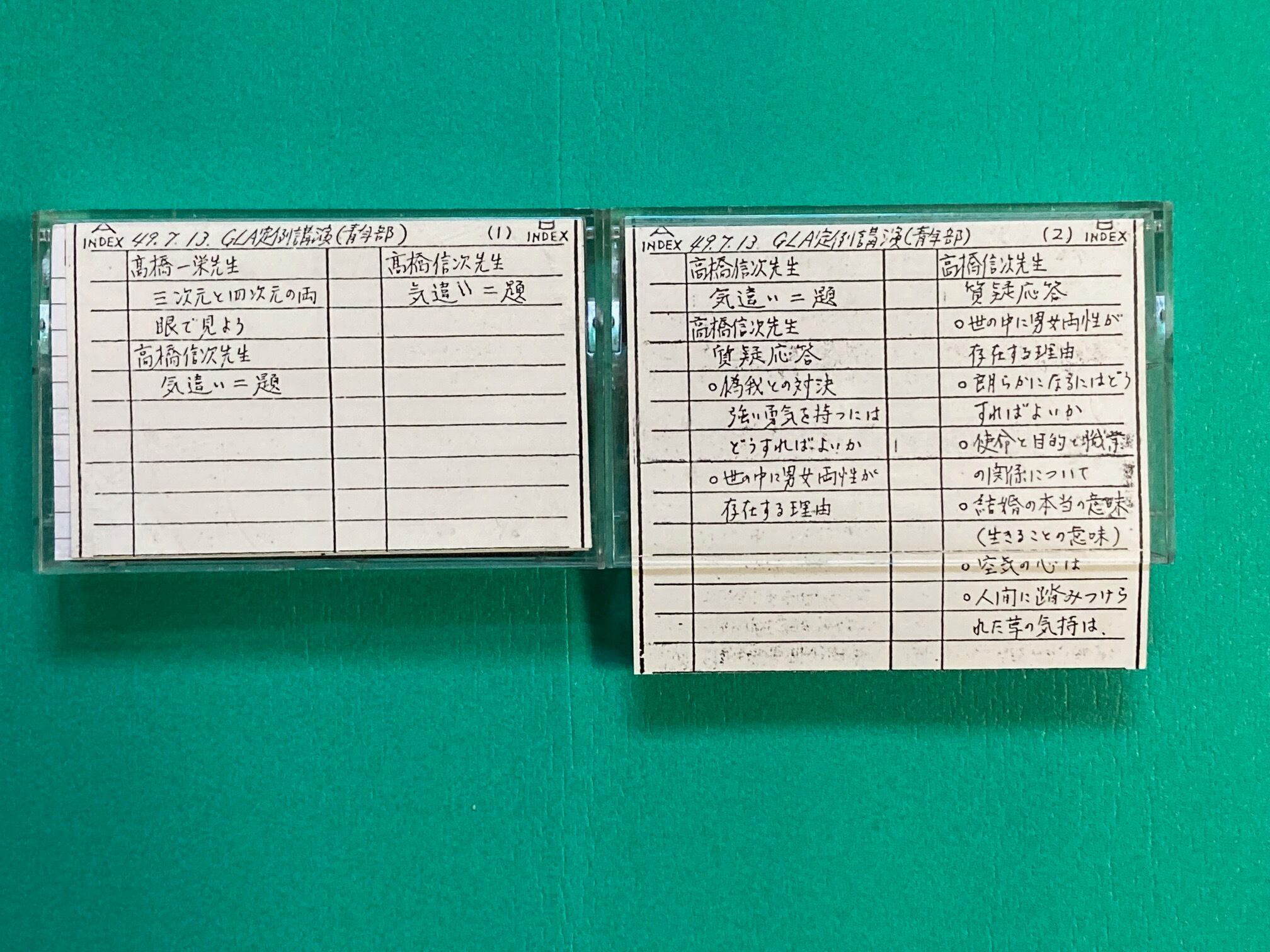 高橋信次先生講演集は、京都、谷口禎氏がカセットテープを聞きながら、文字お越しをされたものです。定年を機に20数年かけて49号迄作成されました。カセットデッキも複数台買い替えたとお聞き致しました。講演集No1~49号まで、順次講演集と音声データをUPして行きます。
