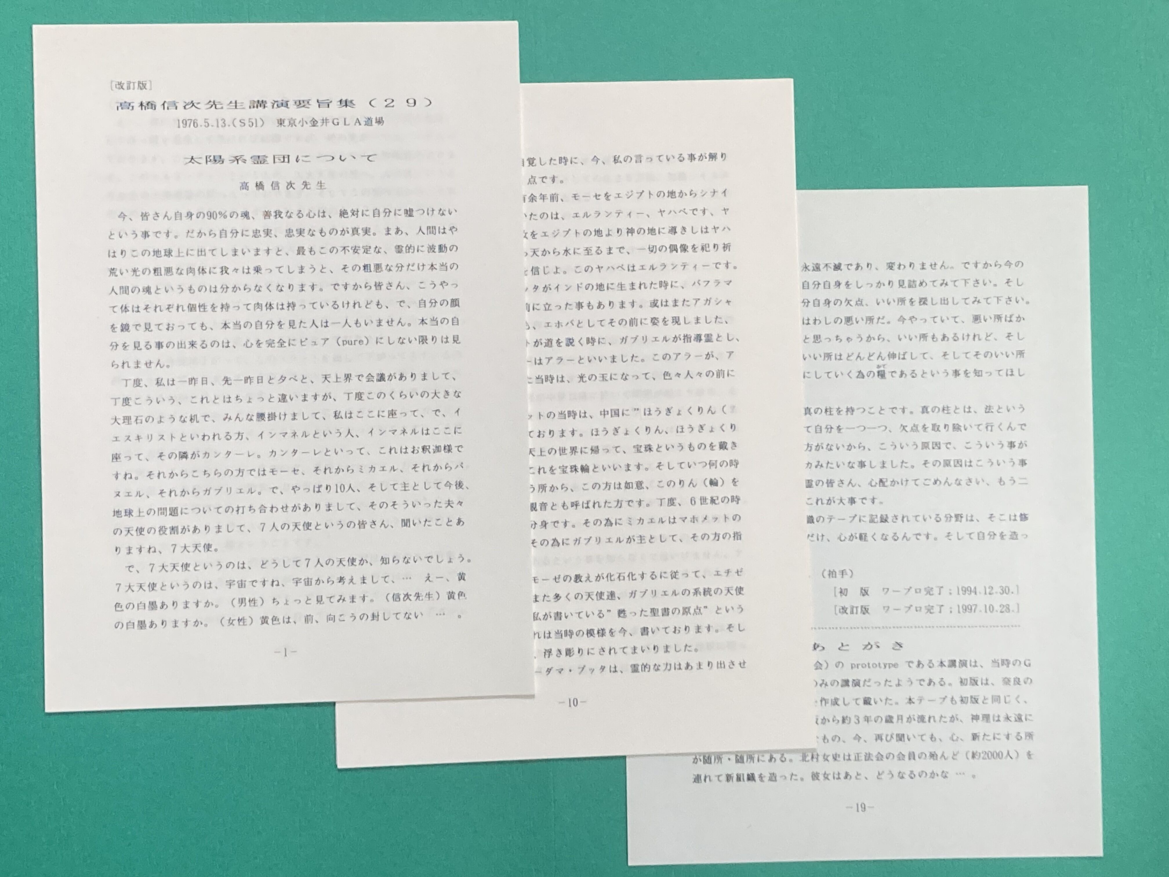 高橋信次先生講演集は、京都、谷口禎氏がカセットテープを聞きながら、文字お越しをされたものです。定年を機に20数年かけて49号迄作成されました。カセットデッキも複数台買い替えたとお聞き致しました。講演集No1~49号まで、順次講演集と音声データをUPして行きます。