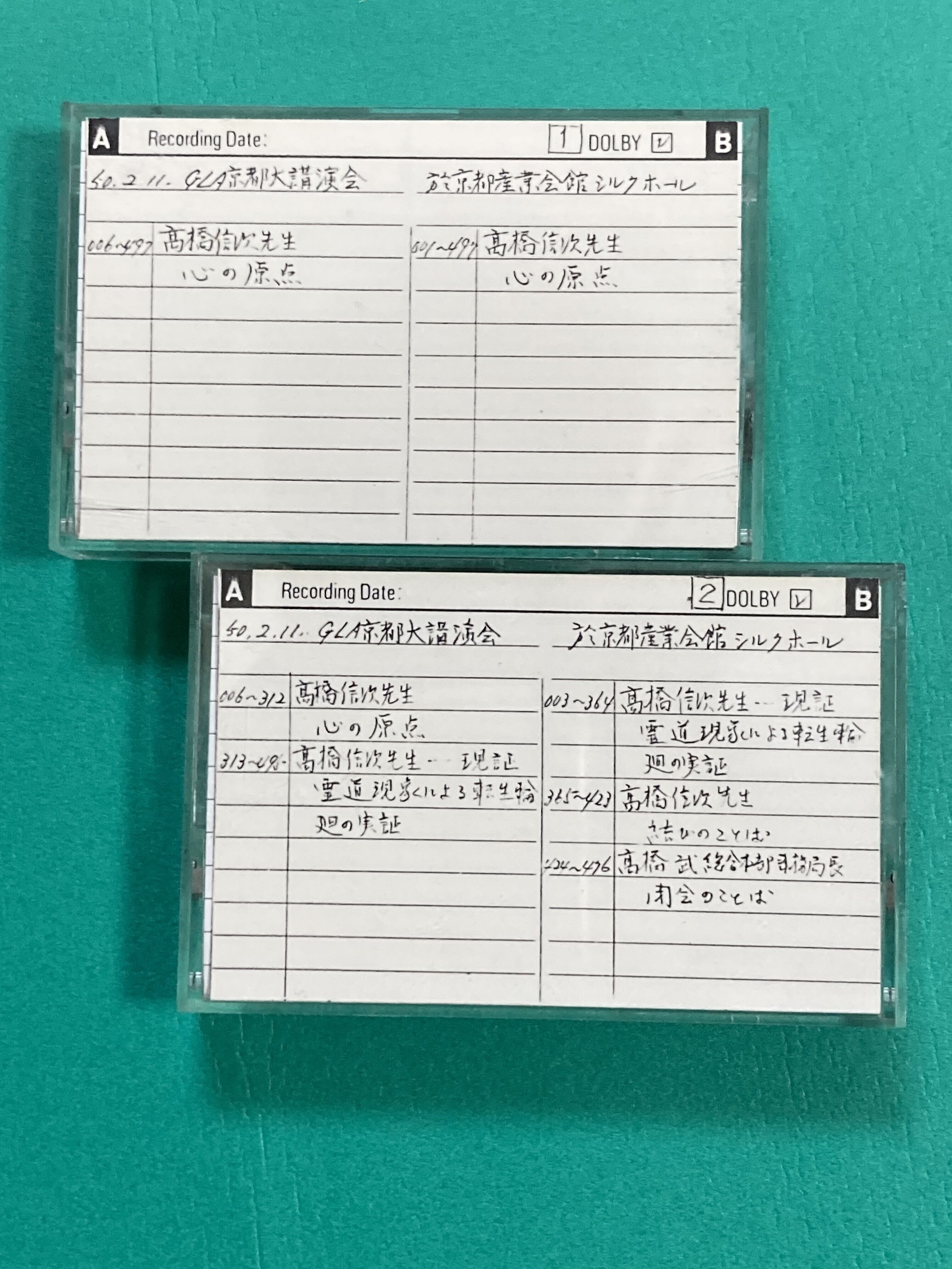 高橋信次先生講演集は、京都、谷口禎氏がカセットテープを聞きながら、文字お越しをされたものです。定年を機に20数年かけて49号迄作成されました。カセットデッキも複数台買い替えたとお聞き致しました。講演集No1~49号まで、順次講演集と音声データをUPして行きます。