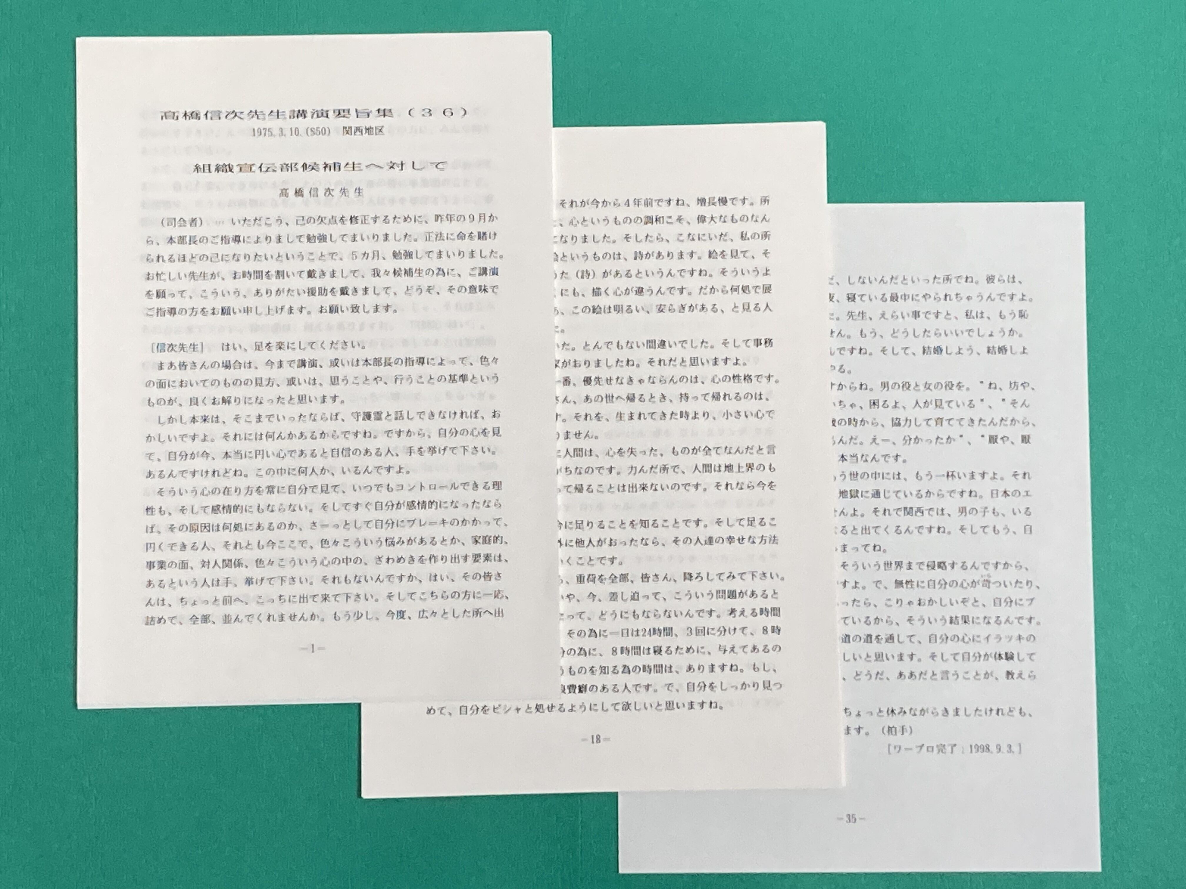 高橋信次先生講演集は、京都、谷口禎氏がカセットテープを聞きながら、文字お越しをされたものです。定年を機に20数年かけて49号迄作成されました。カセットデッキも複数台買い替えたとお聞き致しました。講演集No1~49号まで、順次講演集と音声データをUPして行きます。