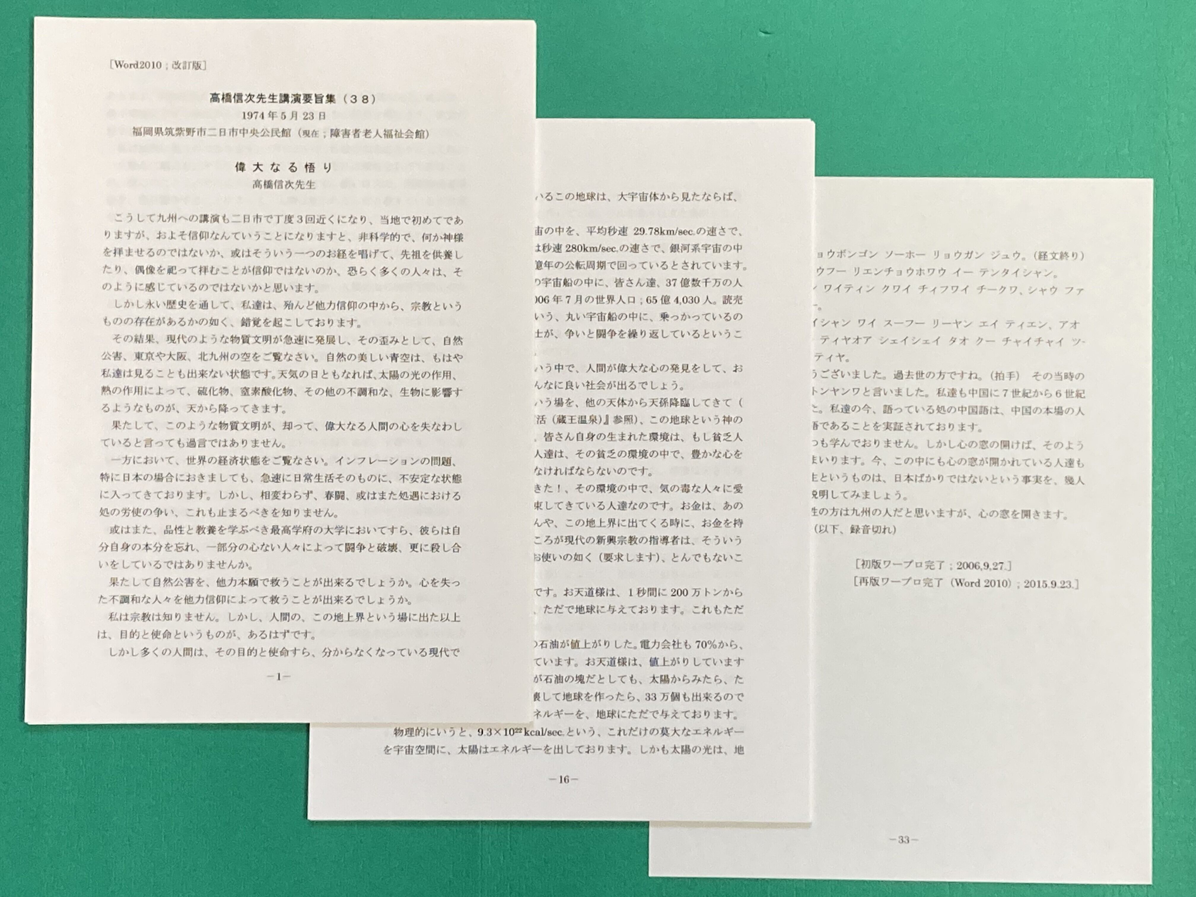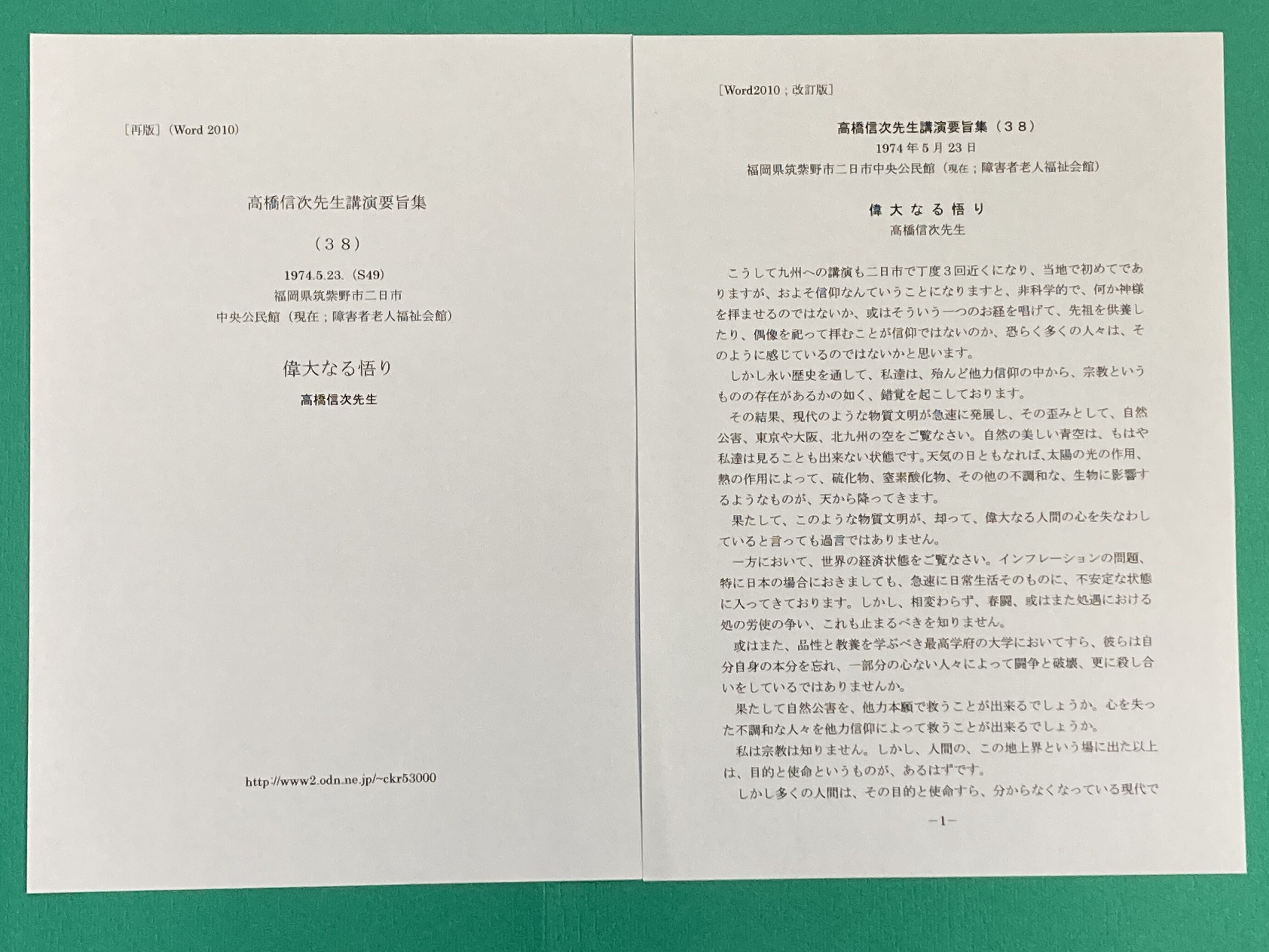 高橋信次先生講演集は、京都、谷口禎氏がカセットテープを聞きながら、文字お越しをされたものです。定年を機に20数年かけて49号迄作成されました。カセットデッキも複数台買い替えたとお聞き致しました。講演集No1~49号まで、順次講演集と音声データをUPして行きます。