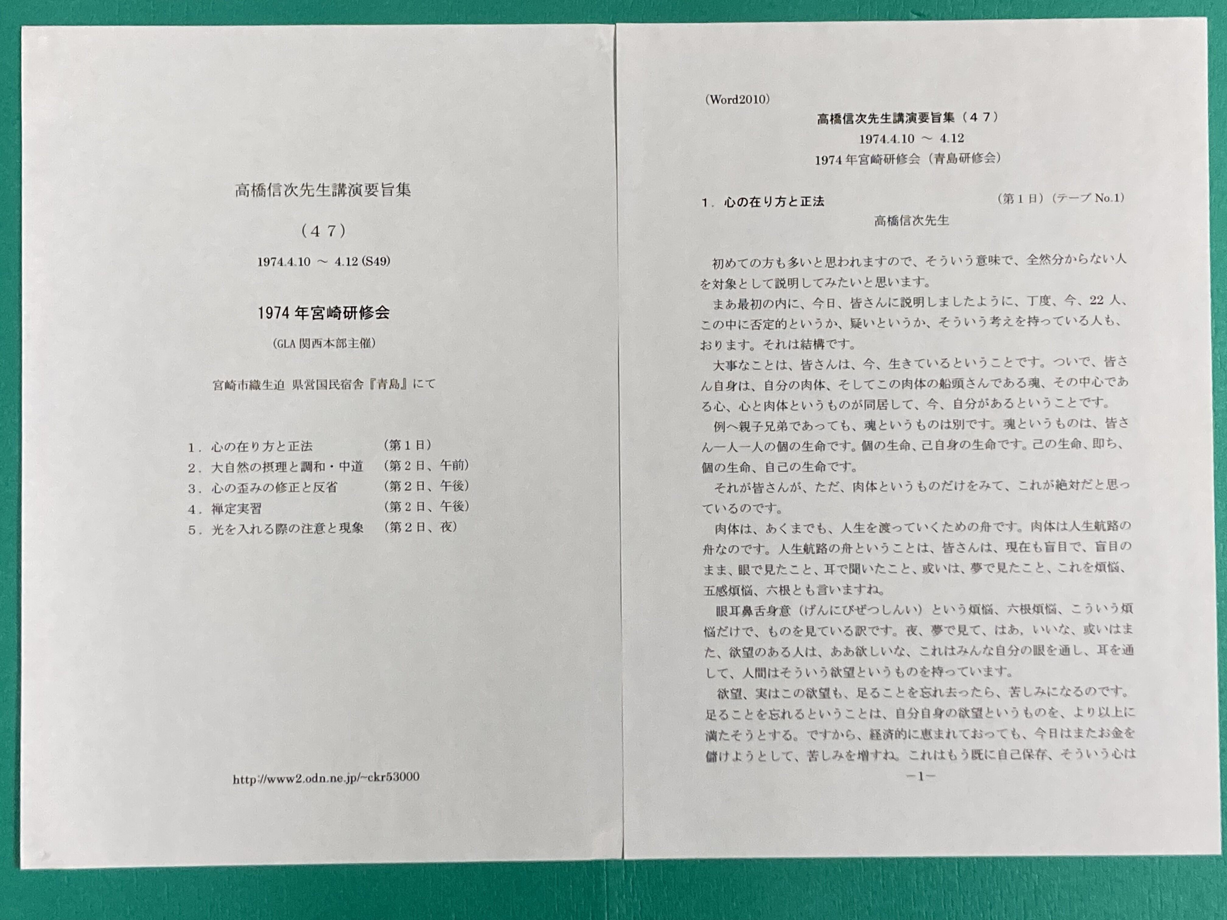 高橋信次先生講演集は、京都、谷口禎氏がカセットテープを聞きながら、文字お越しをされたものです。定年を機に20数年かけて49号迄作成されました。カセットデッキも複数台買い替えたとお聞き致しました。講演集No1~49号まで、順次講演集と音声データをUPして行きます。