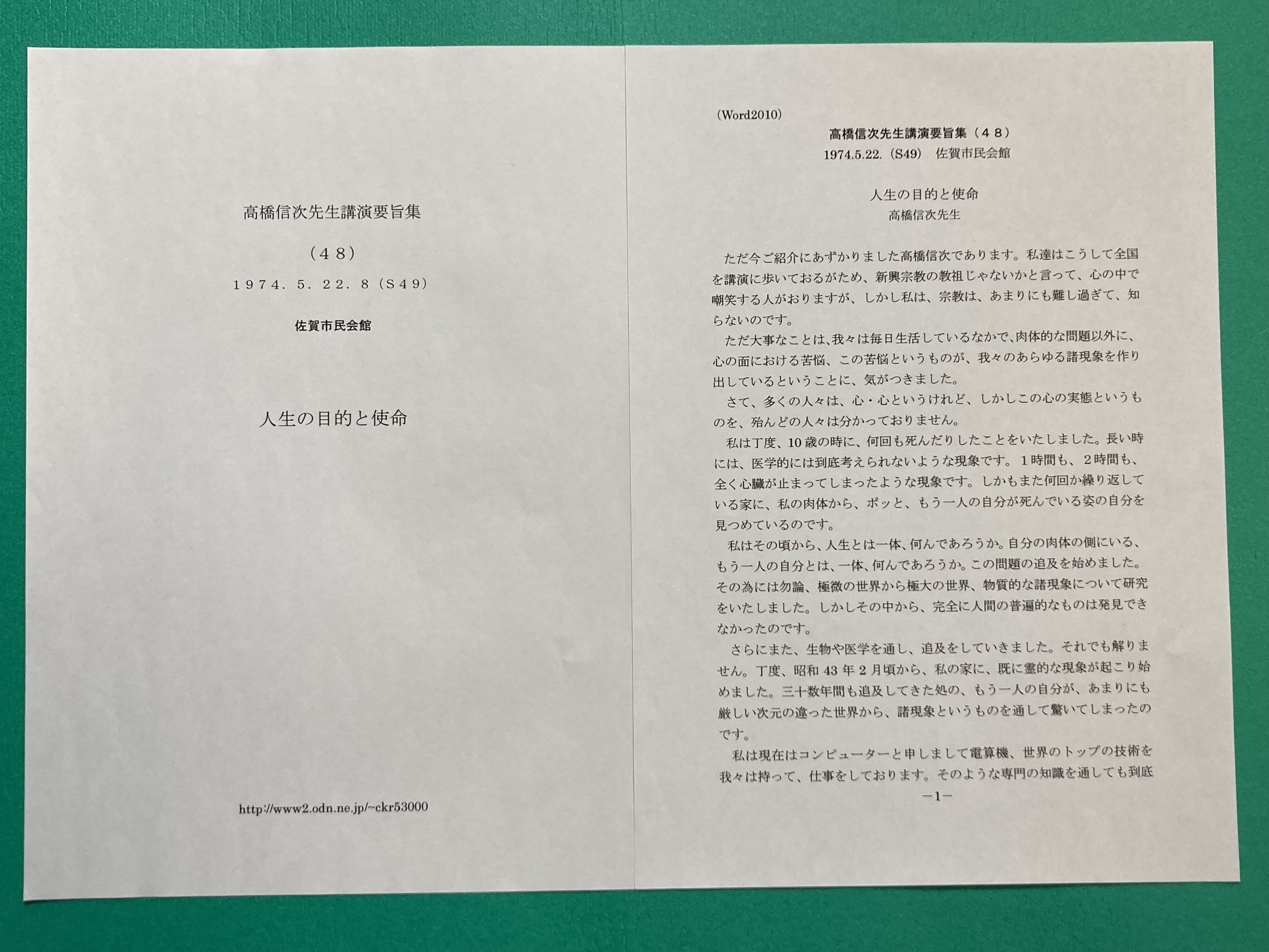 高橋信次先生講演集は、京都、谷口禎氏がカセットテープを聞きながら、文字お越しをされたものです。定年を機に20数年かけて49号迄作成されました。カセットデッキも複数台買い替えたとお聞き致しました。講演集No1~49号まで、順次講演集と音声データをUPして行きます。