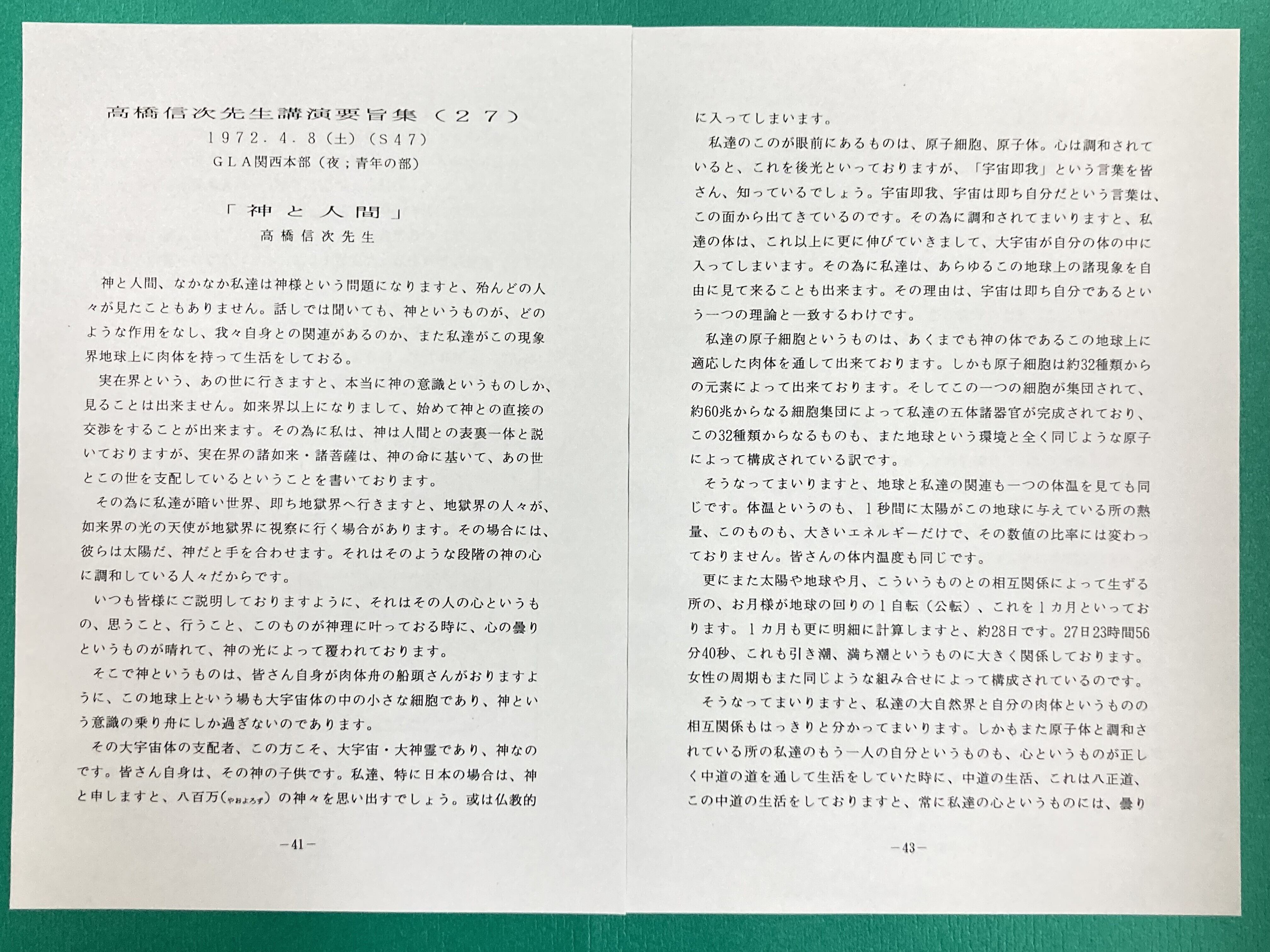 No27 「神と人間」 関西本部 特別講演会 1972.04.08 (S47)