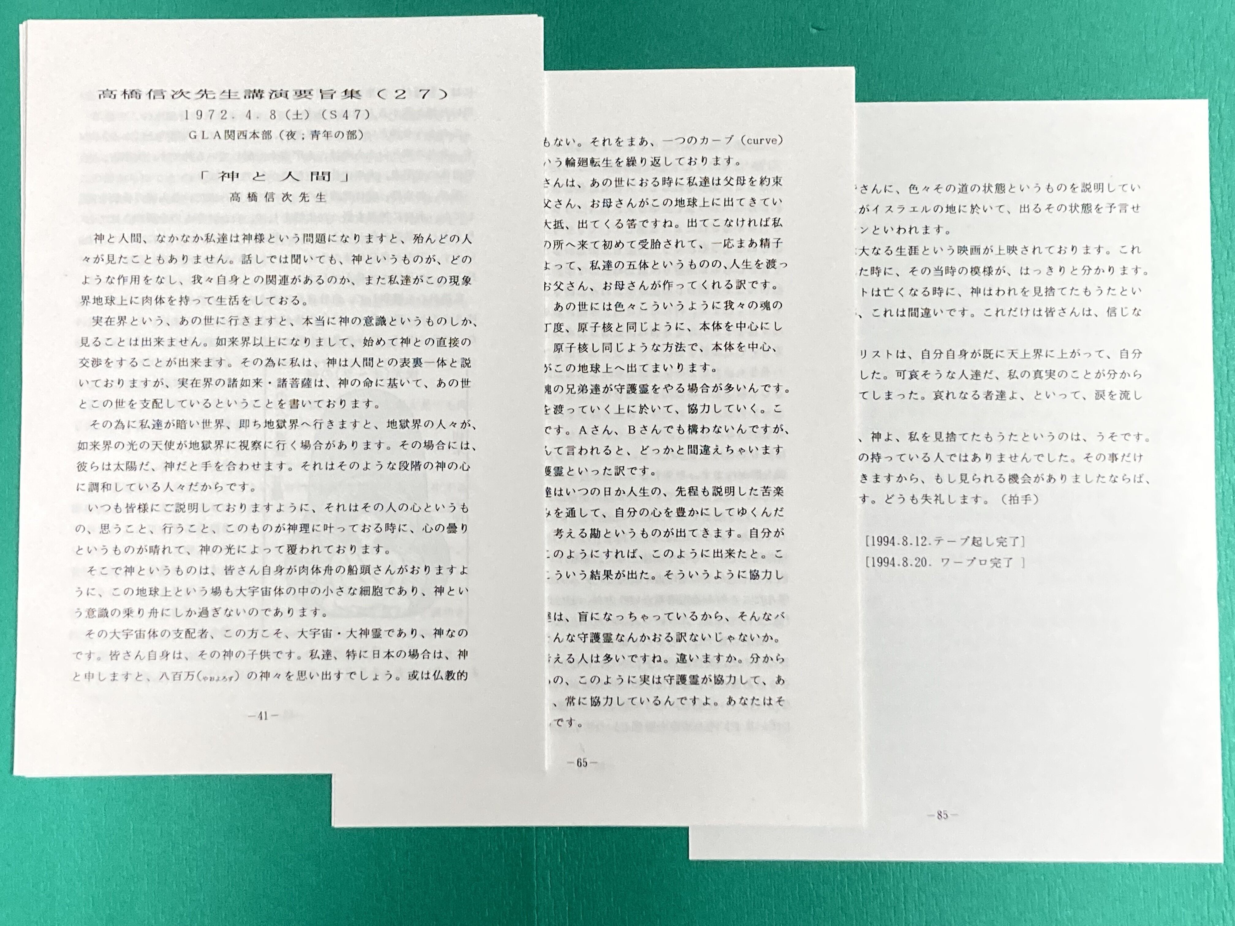 高橋信次先生講演集は、京都、谷口禎氏がカセットテープを聞きながら、文字お越しをされたものです。定年を機に20数年かけて49号迄作成されました。カセットデッキも複数台買い替えたとお聞き致しました。講演集No1~49号まで、順次講演集と音声データをUPして行きます。