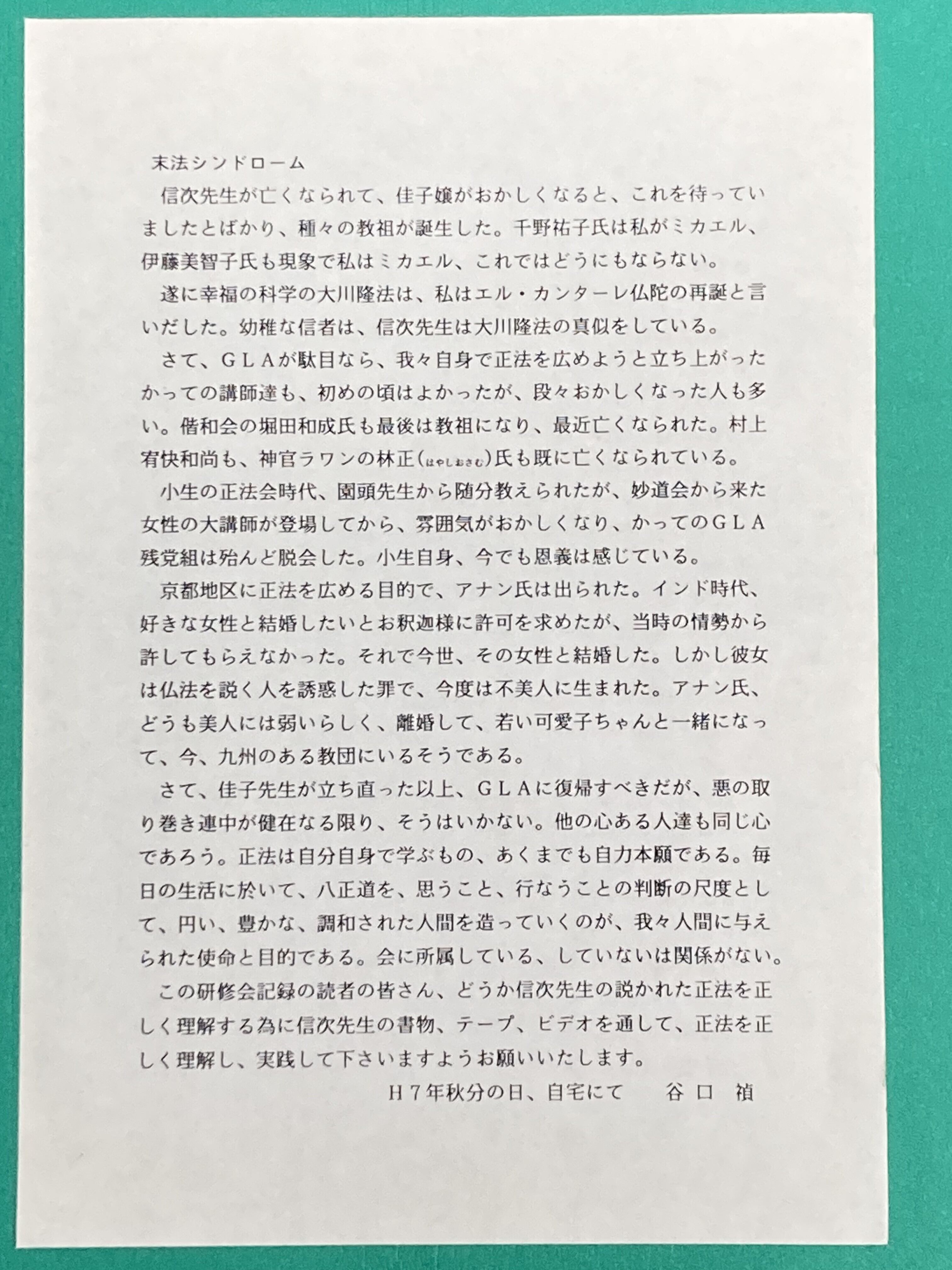 1.音声データは谷口氏が文字お越しされたものと同じではありません。私の保存テープで日付、演題が同じ物をUPしてます。よって講演集と音声データが不一致のものがあるかもしれません。