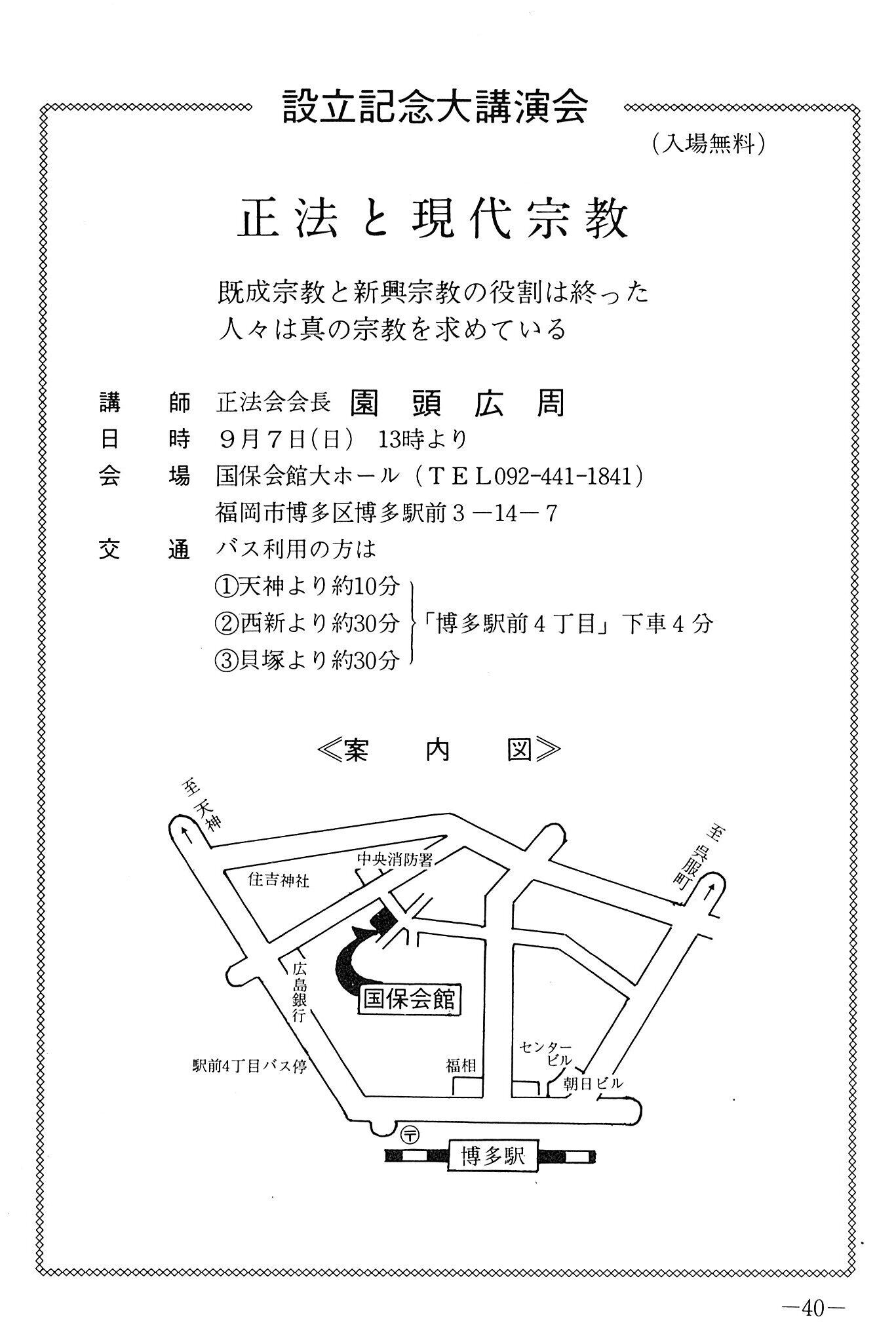 【 No7 】 正法会設立2周年記念講演会 演題:正法と現代宗教 / 於:福岡 国保会館大ホール / 80.09.07(S55)