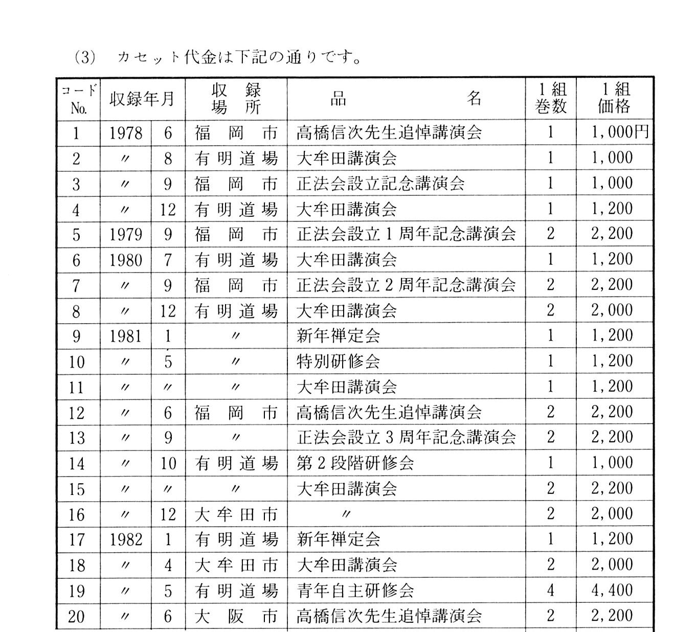 1.音声データはカセットテープよりベタ取りし、編集作業はしていません。実況録音の為、雑音、ノイズ、音声の大・小等があります。