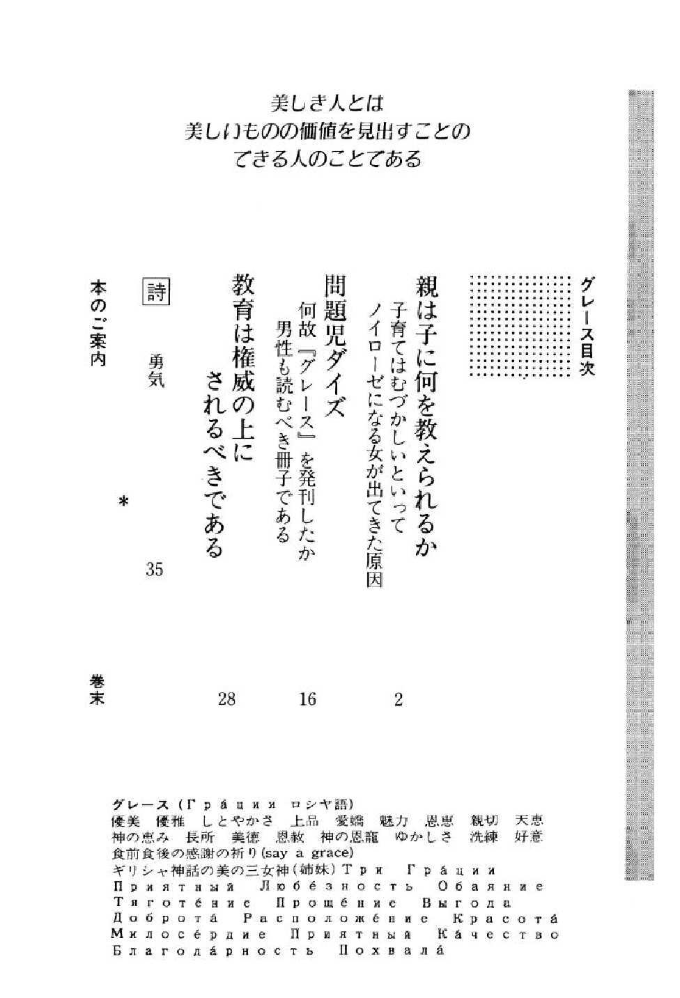 女は結婚して子供を産む。子育ては親が問題であるから、まずその親となる女を教育するために、この『グレース』を出したのである。